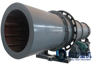 干燥的濕物料由皮帶輸送機或斗式提升機送到料斗,然后經料斗的加料機通過加料管道進入加料端。加料管道的斜度要大于物料的自然傾角,以便物料順利流入干燥器內。干燥器圓筒是一個與水平線略成傾斜的旋轉圓筒。物料從較高一端加入,載熱體由低端進入,與物料成逆流接觸,也有載熱體和物料一起并流進入筒體的。隨著圓筒的轉動物料受重力作用運行到較底的一端。濕物料在筒體內向前移動過程中,直接或間接得到了載熱體的給熱,使濕物料得以干燥,然后在出料端經皮帶機或螺旋輸送機送出。在筒體內壁上裝有抄板,它的作用是把物料抄起來又撒下,使物料與氣流的接觸表面增大,以提高干燥速率并促進物料前進。載熱體一般分為熱空氣、煙道氣等。載熱體經干燥器以后,一般需要旋風除塵器將氣體內所帶物料捕集下來。如需進一步減少尾氣含塵量,還應經過袋式除塵器或濕法除塵器后再放排放。